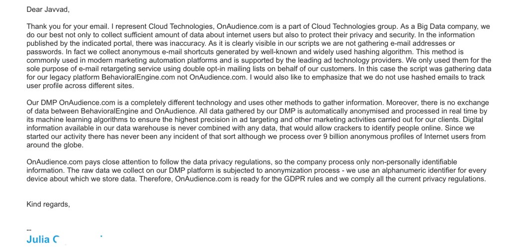 It’s covered in a contract pre assessment. CMA is excused for corporate accounts and people’s personal lives are up for scrutiny – if they choose to share publicly! We would use that information as a criminal would. By its very setting, personal stuff ends up in the public arena.