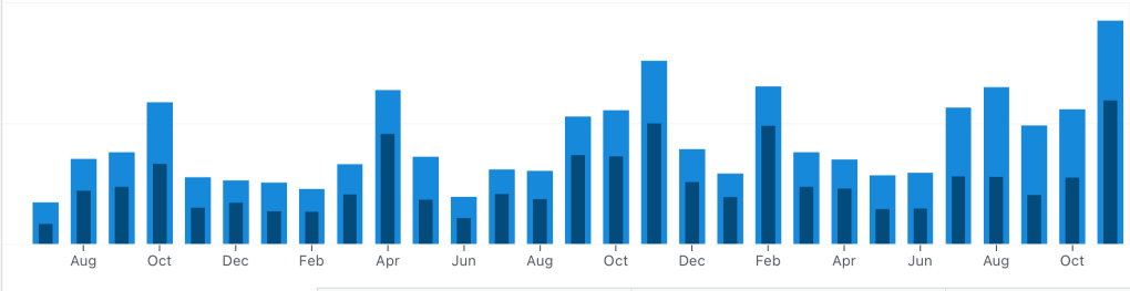 In the end, I wrote 17 blogs during November, the most I’ve written in a long time, perhaps ever. There are another 3 which ended up in drafts that will likely never see the light of day.